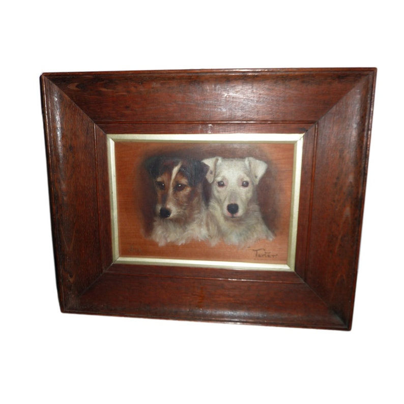 Oil On Board Of Two Jack Russell/ Parsons Terriers - Jack And Tartar circa 1900